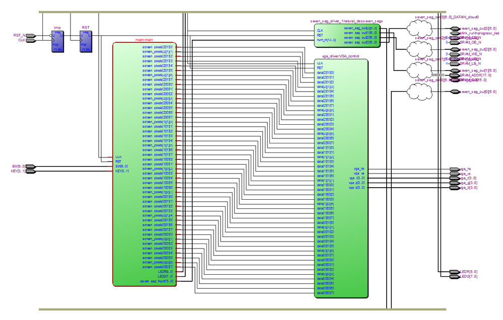 Basically it also works, the only thing is that it expands all records and arrays of the connecting signals, so that in the end all wires in the diagramm represent just one bit. Needless to say, this makes the schematic very unclear. However, in the manual for the rtl-viewer it is written that the rtl-viewer actually should be able to group pins and wires into buses "where appropriate". Unfortunately, i could not find any information how to get this feature to work. Does anybody know how to get the rtl-viewer to display buses properly?
