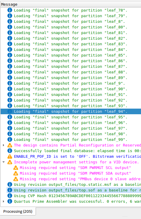 Observing the log, it seems like it does take 8 min to generate a full bitstream and spends additional 1 min for static mask verification and root region logic preservation verification. How can I analyze what is happening under the hood with the Assembler?
