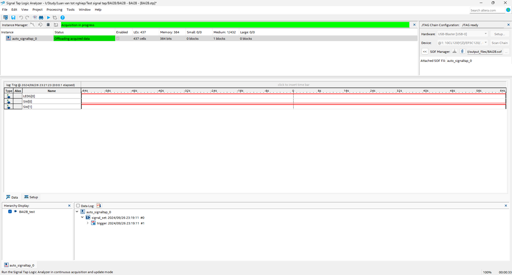 Then you have to be able to toggle the switch at the speed of the sampling clock you’re using for Signal Tap. Signal Tap only captures data at the rising edge of the sampling clock you select.