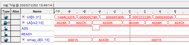 Here's my normal data, with the 3dcccccdh data (LD) at address 4034h (LA) in the first memory block (shown), or at a second memory block at address 6834h: