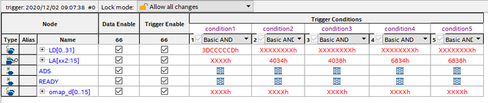 I have an issue were an internal memory block is reporting data that is shifted by 8 bytes. I'm trying to set up a SignalTap trigger to catch the discrepancy. The trigger is activating when it shouldn't so I'm wondering if this trigger is too complicated, or if anyone can suggest a better way to capture it.