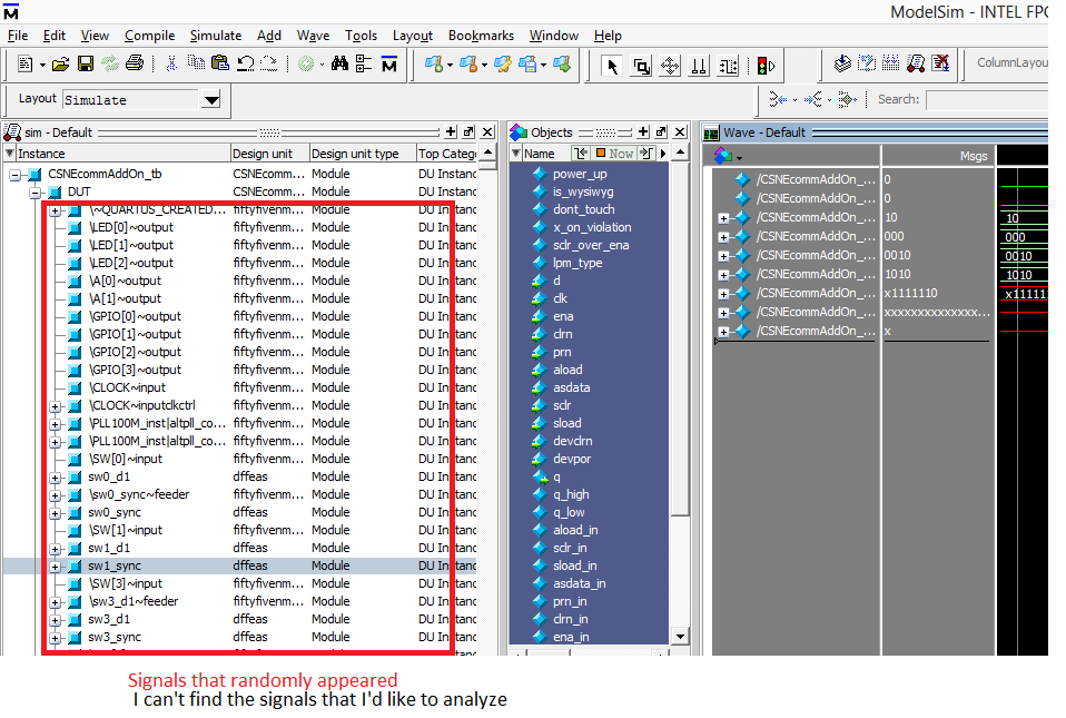 # MACRO ./runlab_CSNEcomm.do PAUSED at line 49I've attached a copy of my *.do script and the *.tcl script that was generated from the IP Core. Not sure if any other info would be helpful though.