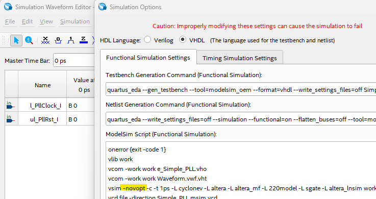 Go to Simulation > Simulation Setting, and remove the -novopt in the script.