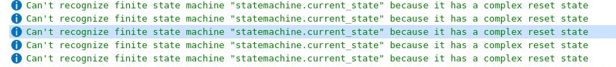 "Can't Recognize finite state machine "statemachine.current_state" because it has a complex reset state 13246