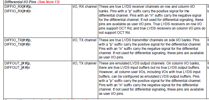 If you are not using SERDES, can check in Quartus if this can be assigned as GPIO and if this GPIO can be assigned as LVDS IO standard.