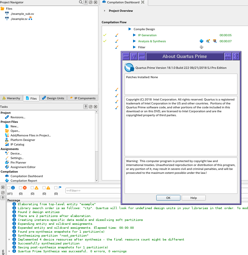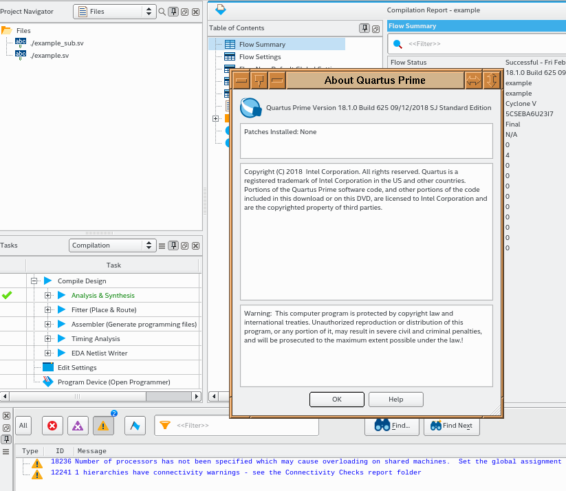 I am using Quartus Lite 18.1.