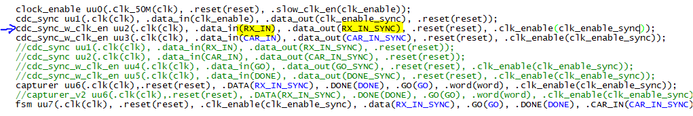 In design ive routed rx_in_sync output to external pin to check the rs232 data being pass to 2 flops synchronizers synced with clock enable signal.