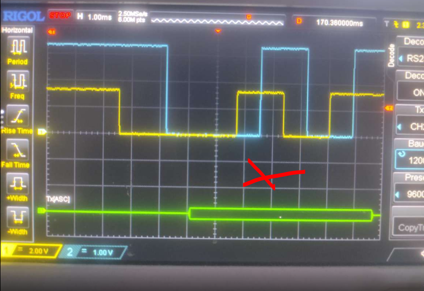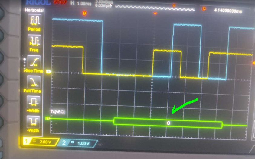 In yellow is the original 1200baud rs232 byte "30" thats ascii "0".