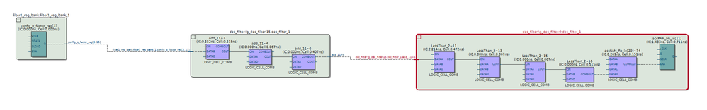 I can see the long path, but I do not understand why it is implemented like this. Why is the register-value routed through dec_filter:15 to dec_filter:9, and not getting the value directly from the register-bank-module to the left?
