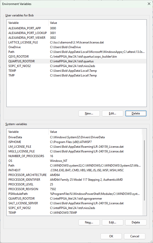 C:\altera\13.0sp1\quartus\bin>lmutil lmdiag lmutil - Copyright (c) 1989-2008 Acresso Software Inc. All Rights Reserved. FLEXnet diagnostics on Tue 7/15/2025 09:19 ----------------------------------------------------- License file: C:\Users\Bob\AppData\Roaming\LR-240159_License.dat ----------------------------------------------------- "intelqsimstarter" v2026.06, vendor: mgcld uncounted nodelocked license, locked to ethernet address "10ffe03bda88" starts: 27-jun-2025, expires: 27-jun-2026 This is the correct node for this node-locked license ----------------------------------------------------- C:\altera\13.0sp1\quartus\bin>