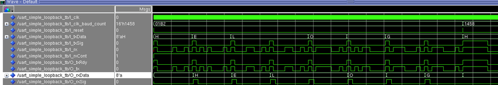 Make appropriate connection between O_tx and I_rx to form a loopback. The simulation result like below: