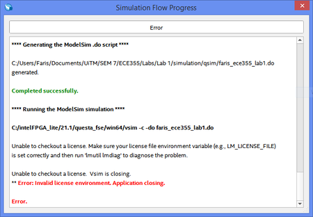 Welcome to INTEL forum. Have you request a Questa free license? if not could you help to request Questa starter license.