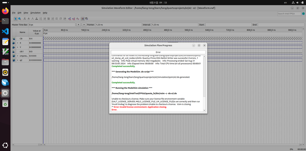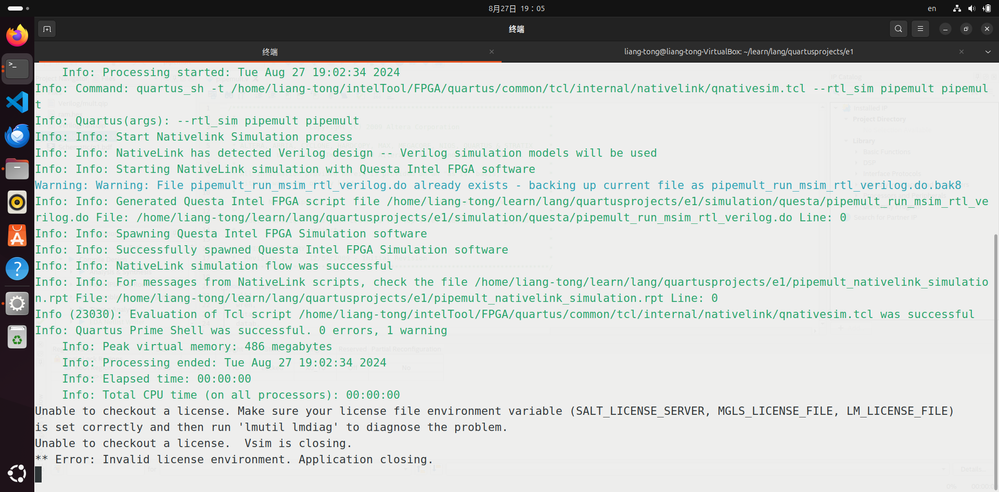 When I try to run RTL simulation. There is error message shown, Unable to checkout license. ……. The detail message is shown in the attached files.Quasta read the right dat filevsim report error about the licansethe file heresystem env report