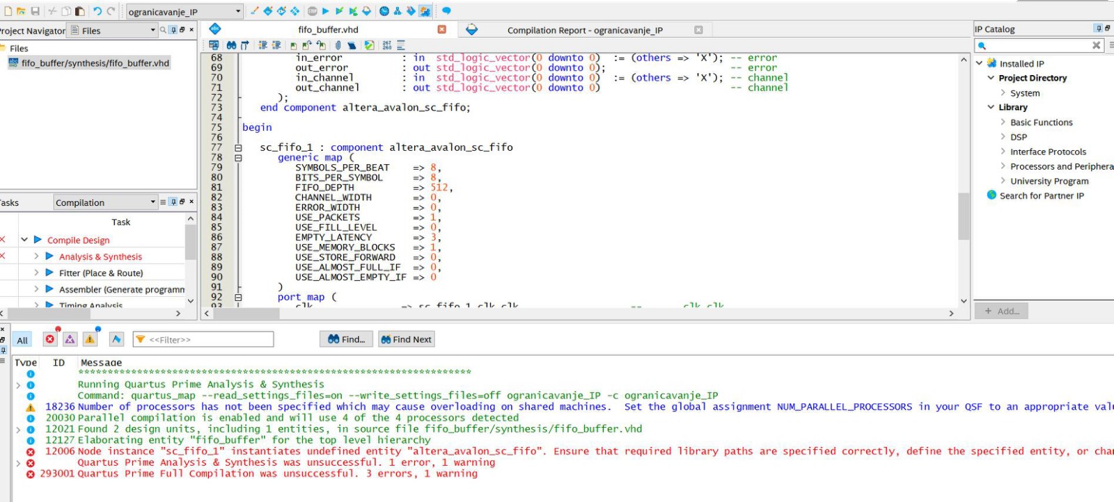 It's not clear what you are trying to do here. Are you trying to synthesize a component that's not connected to anything by just having the HDL file as the only file in a Quartus project? That's not going to work. What's your goal?