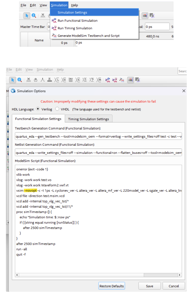 The .do file created uses -novopt parameter to run vsim which is deprecated :