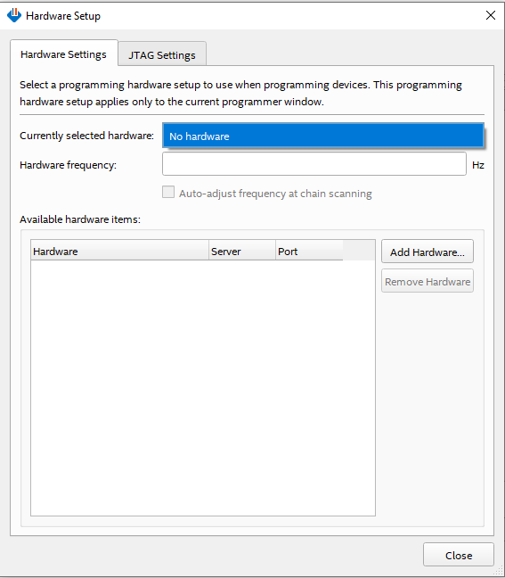 I have been having the issue that the either Signal Tap or the programmer works only once. For example, after I click on stop acquisition in Signal Tap, the "Hardware" is automatically disable and am not able to restart acquiring data again or even program the device again because it says Hardware (USB blaster) disable. See screenshots below.