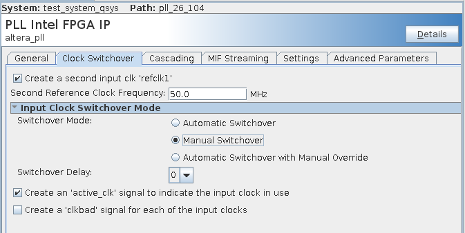 Upon further review the manual switchover and activeclk signal are also not present on the PLL in post fit technology view???