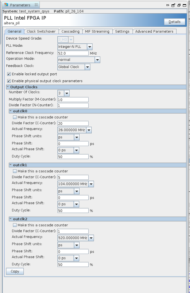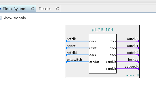 Warning: test_system_qsys.pll_26_104.refclk1: Signal refclk1 has unknown type refclk1.
