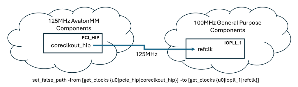 Need advise on suitable set_false_path design constraint construction for the following scenario where PCIE HIP core clock out is used as the reference for an IOPLL instance: