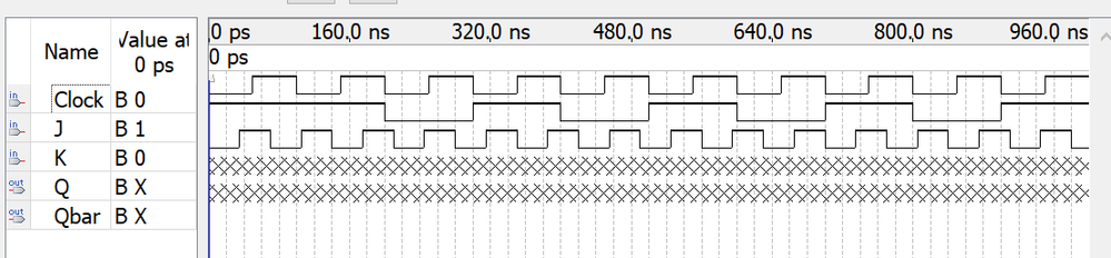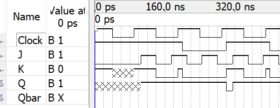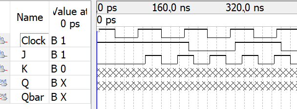 - If CLK is low at the start, the outputs Q and Qb will be X irrespective of the state of J and K.