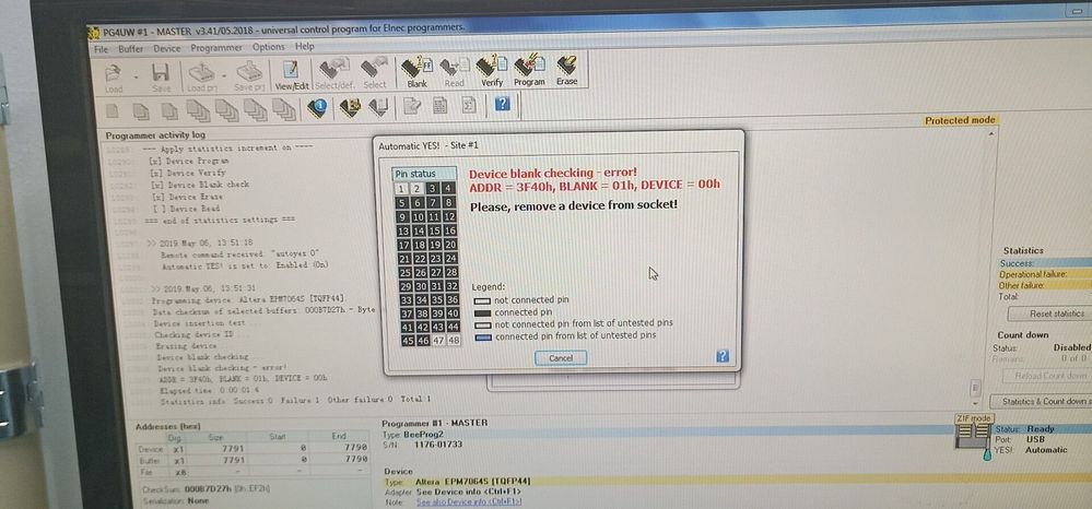 What do mean by Program can't record, blank check fail.