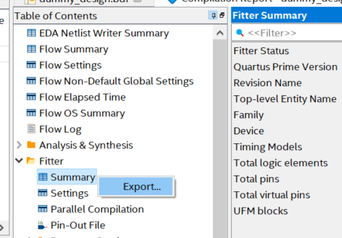 7 years agoWhat is the script equivalent of Quartus Prime GUI's "Export Report as HTML"?