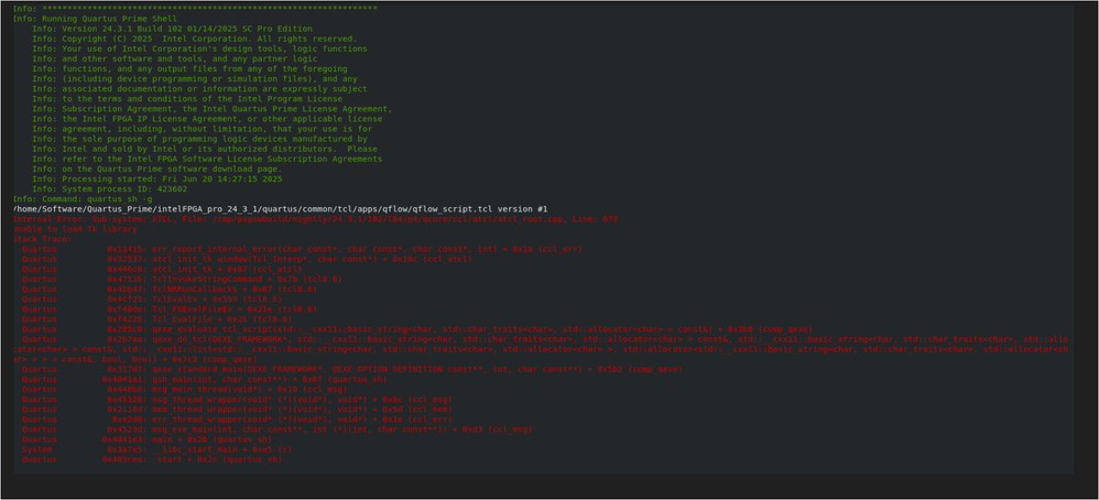 We are currently using RHEL 8.1 and have installed two versions of Quartus: 25.1 and 24.1. However, we are facing the same issue with both versions.