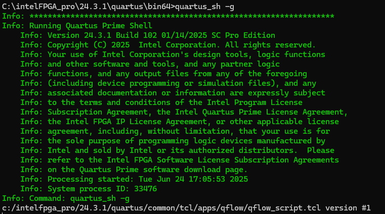 What is your intention in running quartus_sh -g?
