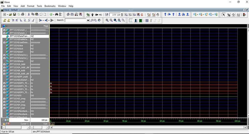 It seems as though none of the inputs - clock ,start, clear are being driven in the design simulation. Have you forced any value to the inputs? If you have written a test bench , make sure you have driven all the inputs to known values. Failure to do so may lead to unwanted values / X in the outputs.