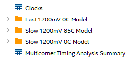 The Cyclone 10 LP FPGA does only have a 3 corner timing analysis for the multi-corner timing analysis, where for example Cyclone V FPGA has the usual 4 corner timing analysis, with (slow, fast) x (co...