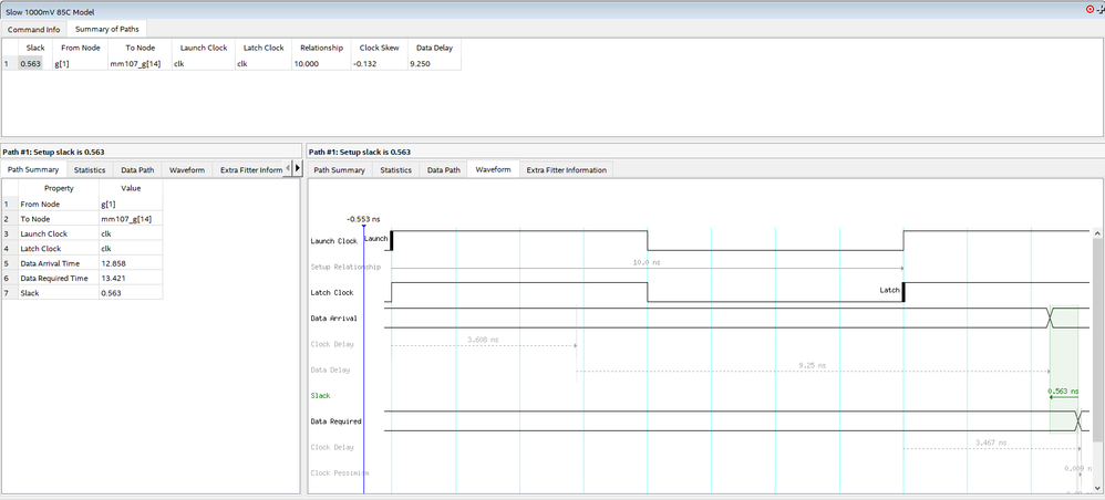 Here is the waveform from Quartus Prime TimeQuest: