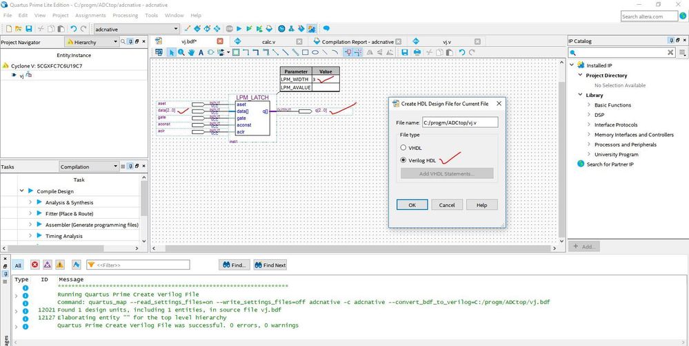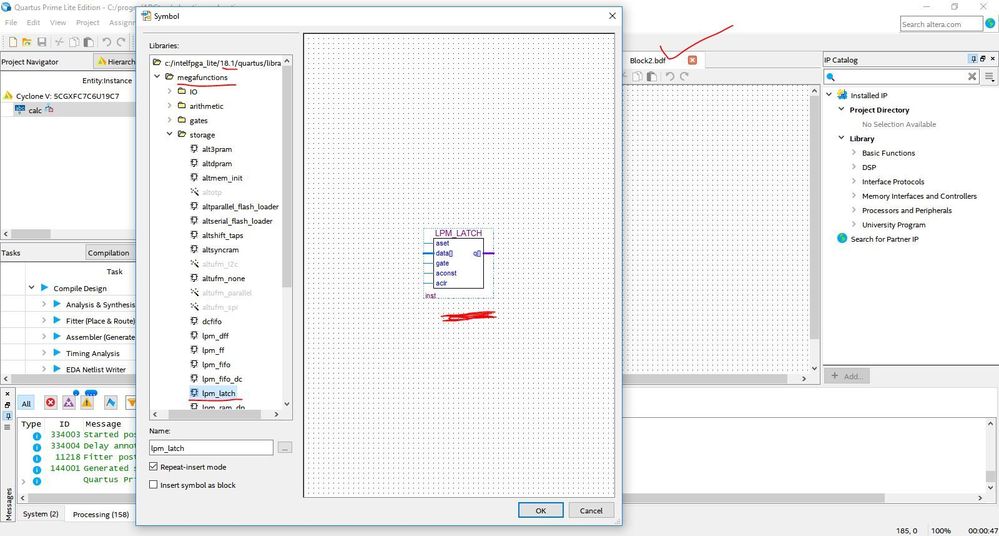 - Open the .bdf file( already inserted the LPM_LATCH & edited the width parameter refer the screenshot)