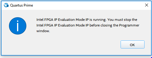 it pops up a window said, "you must stop the intel fpga ip evaluation mode ip before closing the programmer window". I did a simple search, but couldn't figure out how to do this.