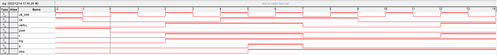 My problem is I don't know why there is a delay between posedge clk and signal s. I use a similar way to descript s and t. When clkPLL rise, t will rise immediately. However, I cound't got a same result on t.