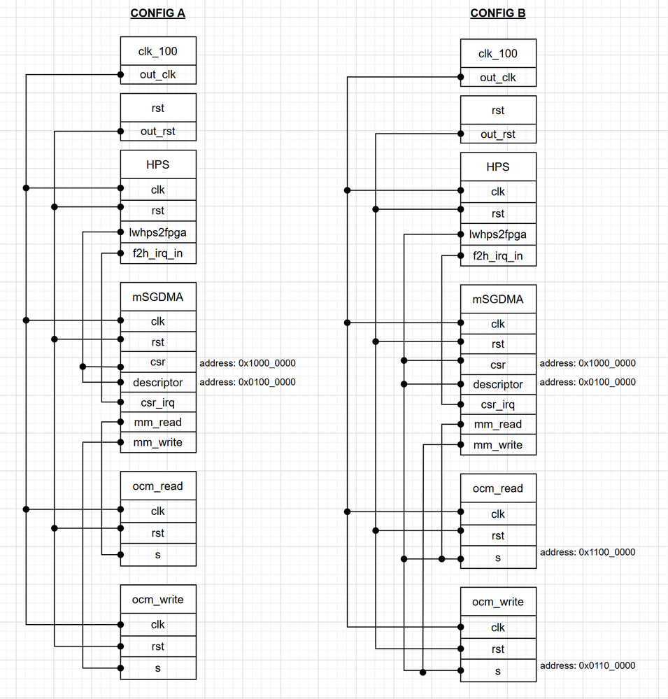 So far, I have compiled both designs A and B using only Intel IP. I have not included any custom verilog based drivers. Nothing is tested yet on hardware.