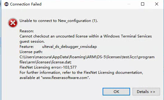 Thanks for your update. May I know, are you accessing a machine over a remote desktop session? Referring to error message ( License Issue: Cannot checkout an uncounted license within a Windows Terminal Services guest session ) looks like you using remote session.