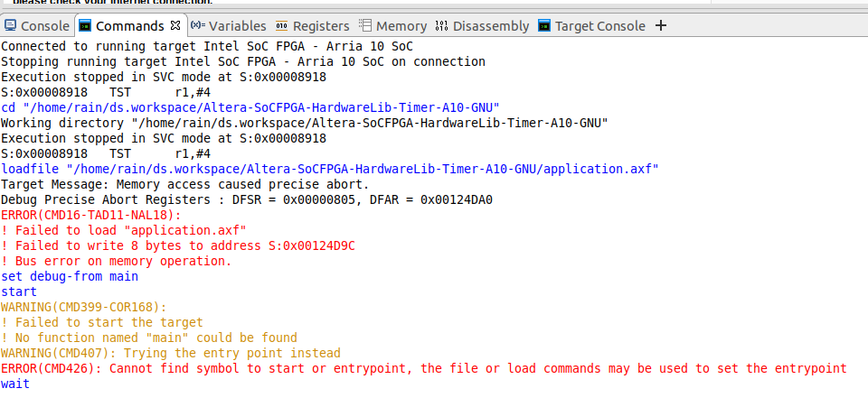 and today, i followed the steps on SoCEDS and ARM Development Studio | Documentation | RocketBoards.org, to exercise the sample application.