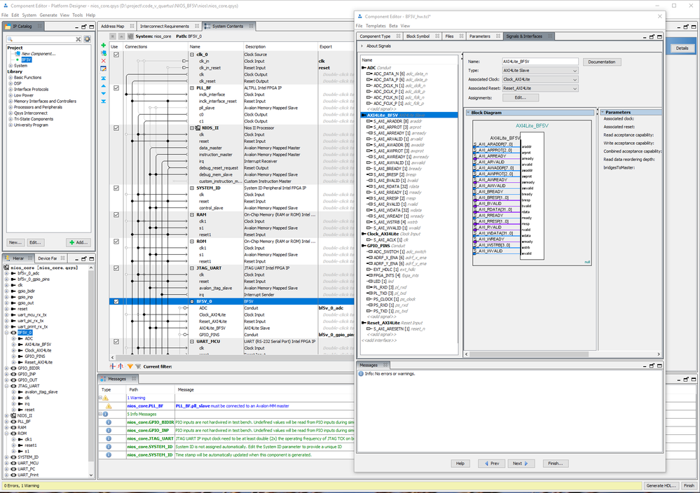 1) In Platform Designer, I create a new IP whose name BF5V whose interface is AXI4Lite. Please see the following picture.