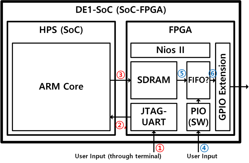 1. Is the revised system configuration is practical to be implemented? (i.e. can we build a system like the later figure using the DE1-SoC?)
