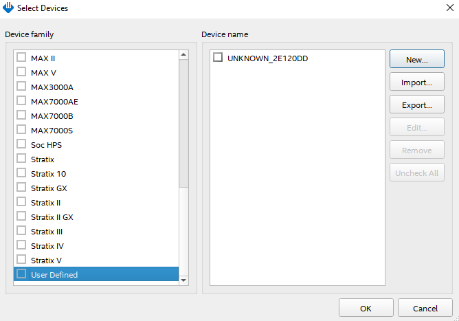 I tried renaming the unknown device ID and changing the instruction register length to 10.