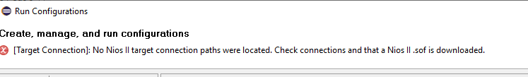 After that I was able to program the device, but still couldn’t run the nios application code. For some reasons, the Eclipse is not detecting the target connection path.