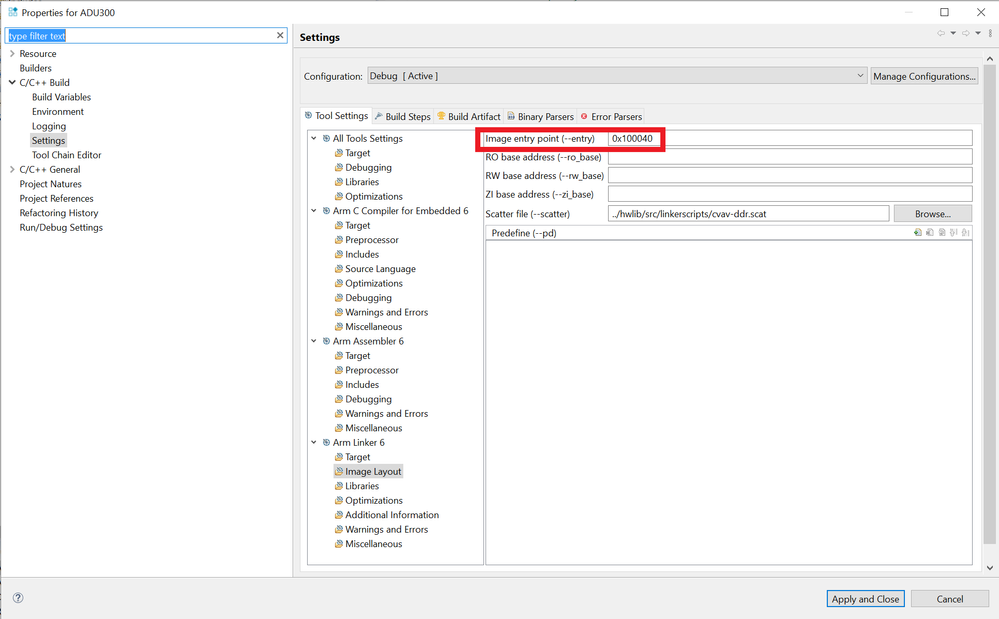 I'm developing a bare metal application for a Cyclone V. I am able to debug directly with no problems when using an on-chip RAM scatter file but I am having issues debugging from SDRAM. Using an SDRAM scatter file, I can debug without issue after first executing U-Boot from the factory SD card image. However, when I try the same with U-Boot built from the latest U-Boot release (2022.04), U-Boot reports an 'undefined instruction' and the processor resets when I begin debugging. Prior to the reset, U-Boot seems to function normally and I am able to execute commands from the terminal window. For reference, the DE10-Nano factory image uses U-Boot 2017.03-rc2.