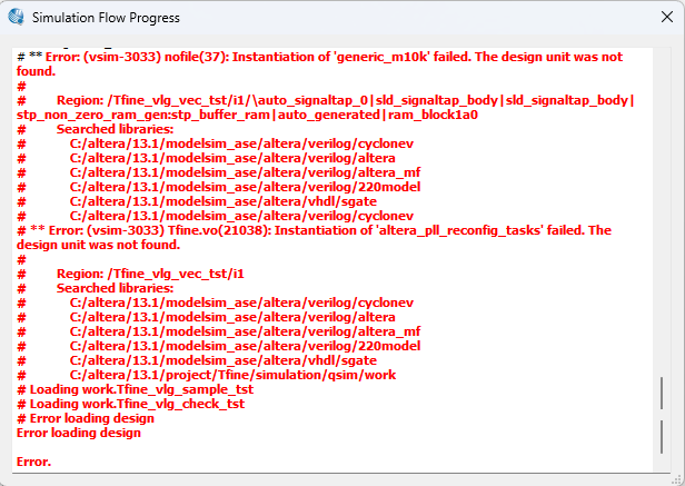 # ** Error: (vsim-3033) Tfine.vo(21038): Instantiation of 'altera_pll_reconfig_tasks' failed. The design unit was not found.
