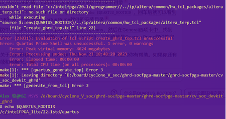 Hi Under SOCEDS v20.1 and Quartus Prime lite 22.1std using MSYS2 running make generate_from_tcl failed duel to the QUARTUS_ROOTDIR error, following is the printscreen of the error: My variabl...