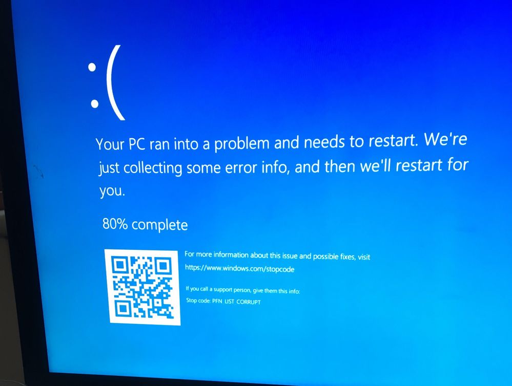 The stop code is: PFN_LIST_CORRUPT