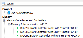 I searched for "SDRAM" in the IP components and found that: