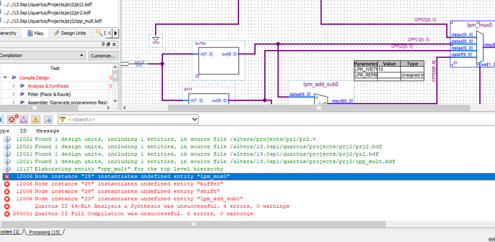 Error (12006): Node instance "25" instantiates undefined entity "lpm_mux0"