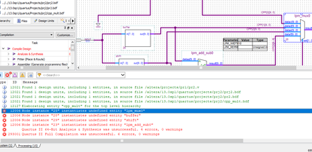 Error (12006): Node instance "25" instantiates undefined entity "lpm_mux0" Error (12006): Node instance "28" instantiates undefined entity "buffer" Error (12006): Node instance "29" instanti...