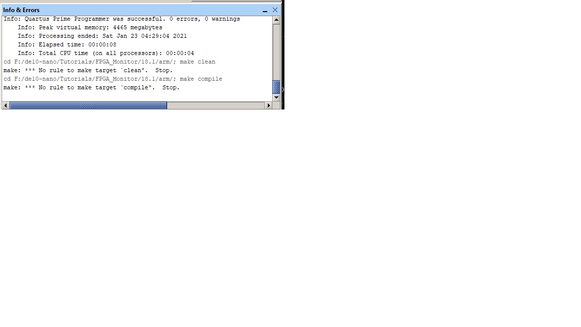 cd F:/de10-nano/Tutorials/FPGA_Monitor/18.1/arm/; make compile