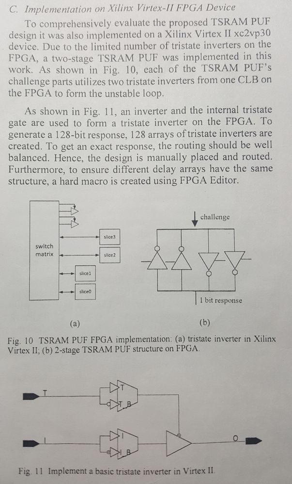 My issue is that it requires both knowledge of manual place & routing and the design of its fundamental gate, which is a tristate inverter, but I'm unable to do either because I'm quite novice in the world of FPGAs and that I'm not able to read the figures the image I provided.